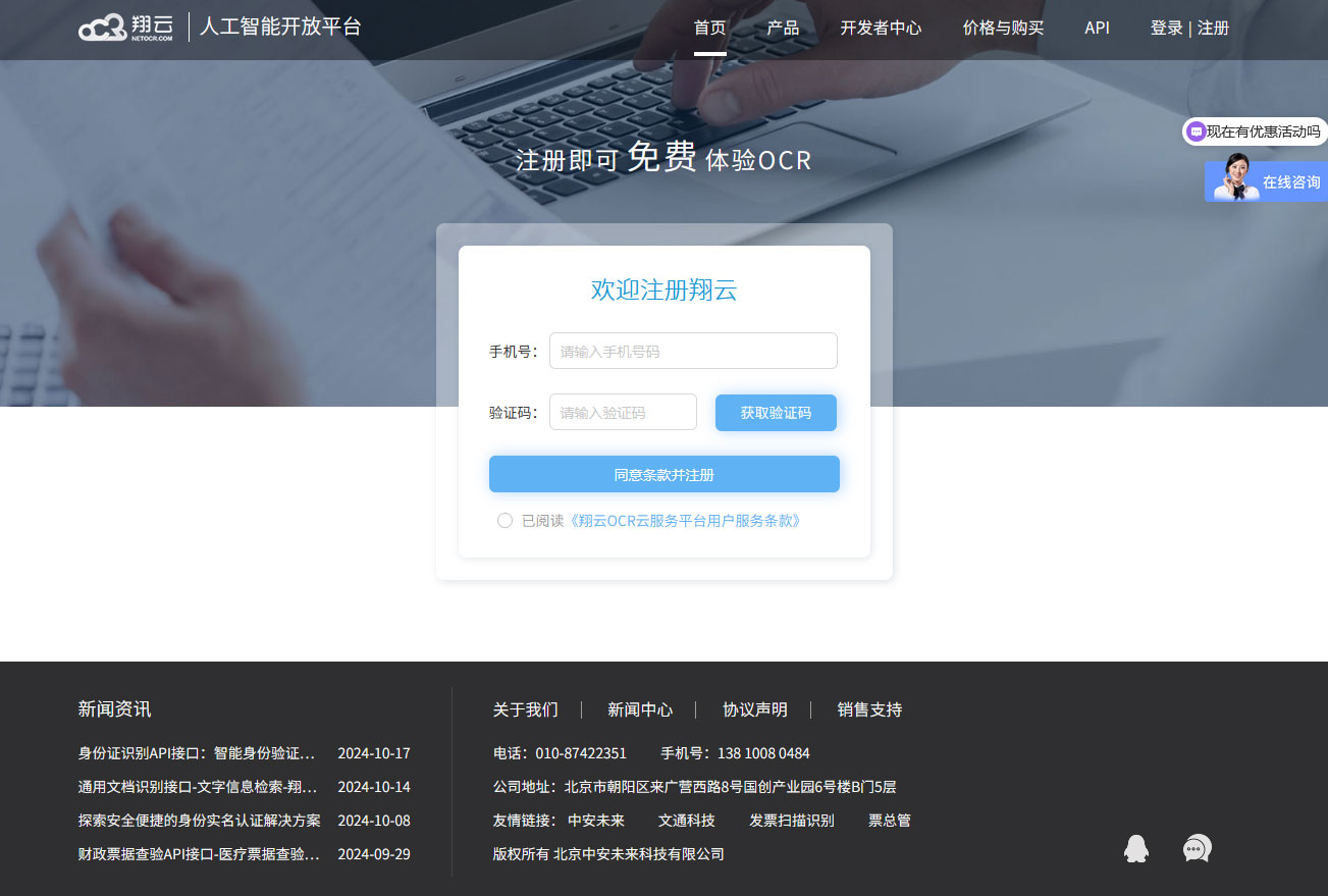 (1)免费测试资源获取:用户可获得一定数量的免费调用次数,这些资源专为调试接入而提供,旨在让您在测试阶段能够顺利使用。各服务所包含的免费测试资源详情及其赠送,可以通过添加购买页面企业微信获取,或点击下方链接获取(每个账号仅限领取1次) https://www.netocr.com/order/NetocrNewUser/newUser.html?wxwork_userid=apiXiangYunocr。
